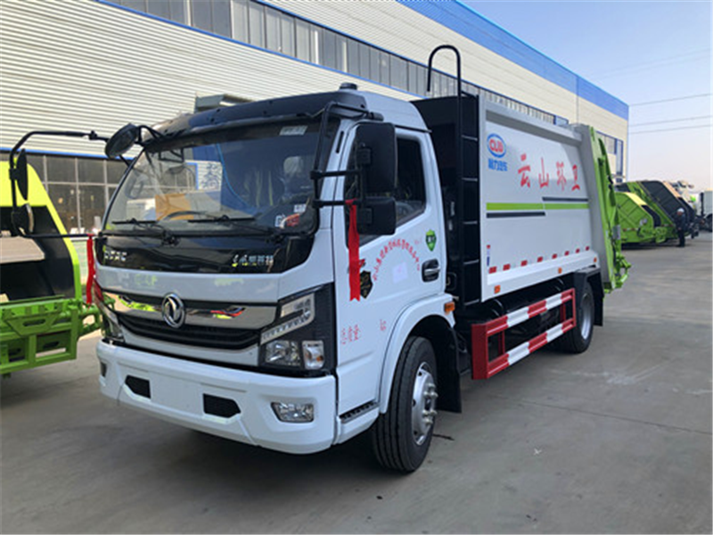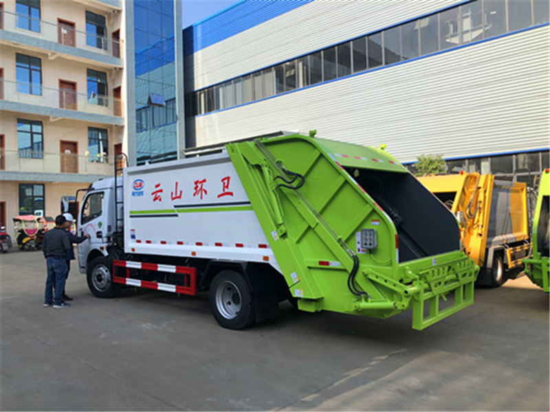 功能介绍:压缩式垃圾车,由厢体、装料机构、压缩机构、卸料机构、油泵、油缸、控制阀等组成的液压机构组成。厢体材料为优质锰钢 ,装料机构由支架,连杆机构,凸轮,挂钩等组成。在油缸作用下,将垃圾桶内的垃圾自动翻转倒入料斗内。