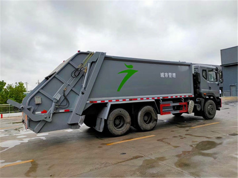 功能介绍:压缩式垃圾车,由厢体、装料机构、压缩机构、卸料机构、油泵、油缸、控制阀等组成的液压机构组成。厢体材料为优质锰钢 ,装料机构由支架,连杆机构,凸轮,挂钩等组成。在油缸作用下,将垃圾桶内的垃圾自动翻转倒入料斗内。