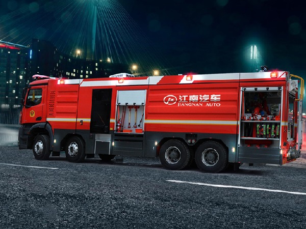 该泡沫消防车,整车主要由梅赛德斯-奔驰 Arocs 4158型消防车专用底盘、**乘员室、水罐、泵室、泵送系统、智能集成**系统、水**、水炮、随车消防器材以及其他附属**等组成。整车改装后载荷分配均匀,质心位置和稳定性计算**,内部空间布局合理,能充分满足操作人员的使用要求。