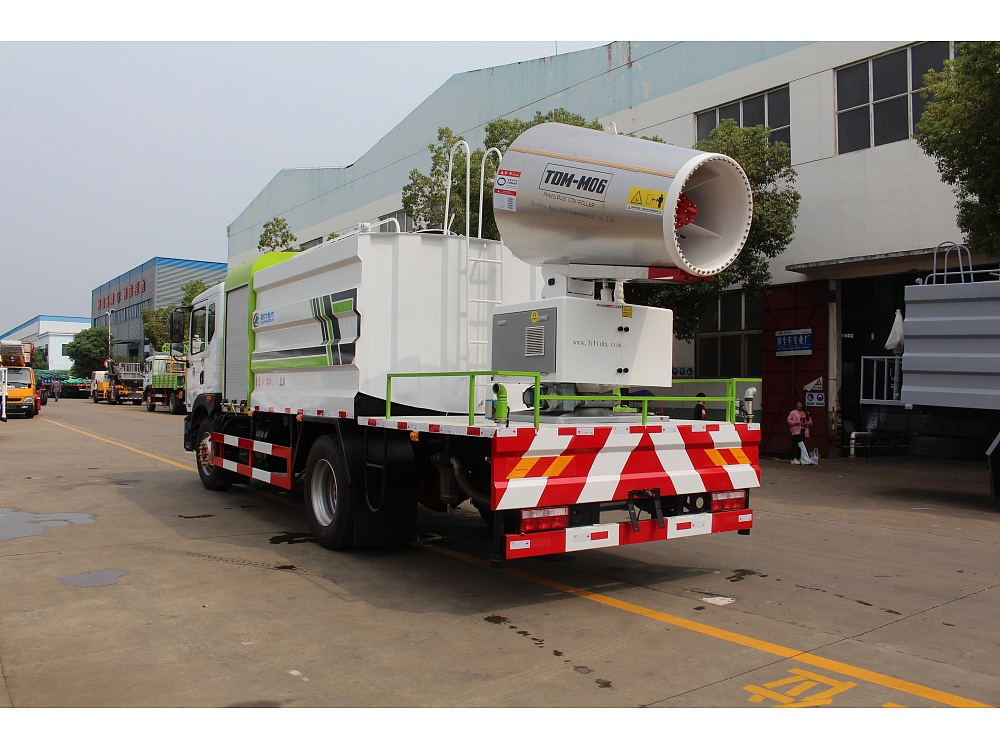 2、雾炮机喷射的水雾能对悬浮在空气中的粉尘颗粒进行有效地吸附,使粉尘受重力作用沉降,从而达到抑尘作用。