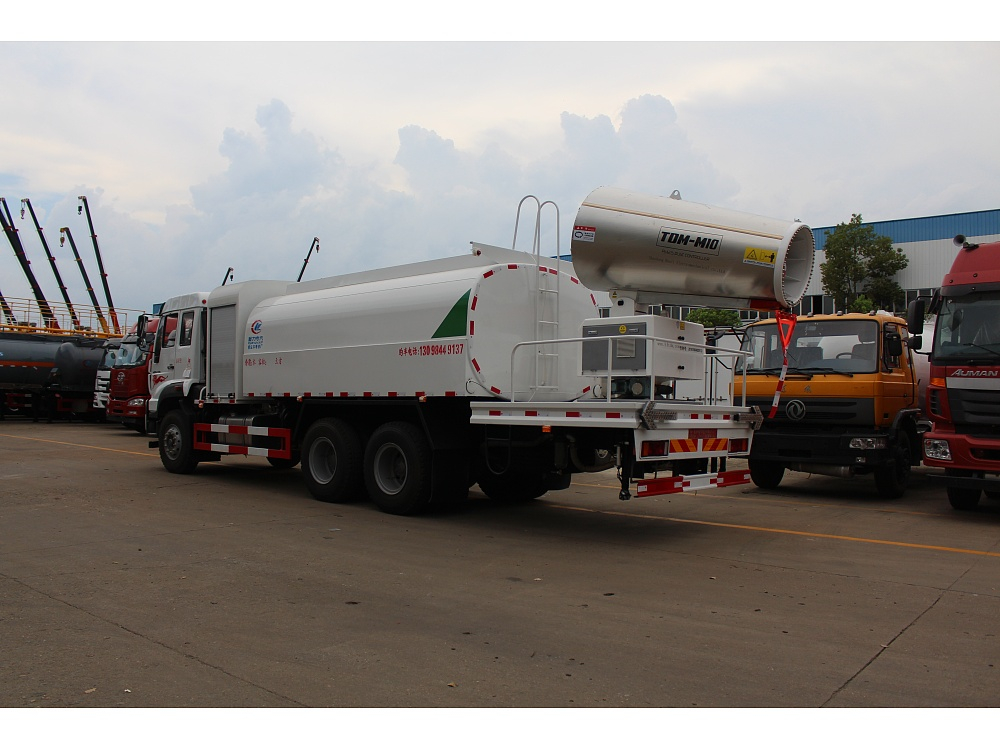 2、雾炮机喷射的水雾能对悬浮在空气中的粉尘颗粒进行有效地吸附,使粉尘受重力作用沉降,从而达到抑尘作用。