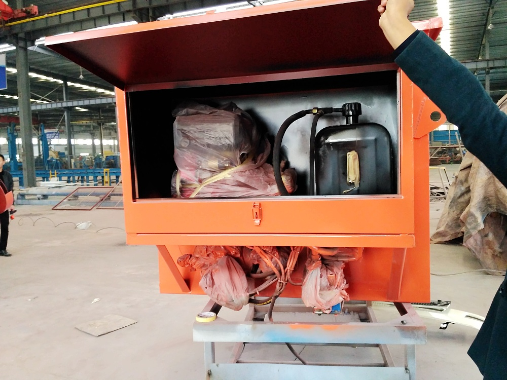 电启动发动机工作,通过液压泵带动马达旋转,把料斗中的融雪剂输送到撒料盘,由马达带动高速旋转的撒料盘把融雪剂均匀撒出。撒布机的物料分配抛撒机构由,固定桶、调节桶、溜槽和甩盘。融雪剂靠自重落入固定桶内,经调节桶、溜槽进入甩盘,靠甩盘高速旋转产生的离心力抛撒出去。根据承载汽车底盘高低不同,调节固定桶和调节桶的相对位置,以达到调节甩盘高低,满足不同车型使用;具有的翻转功能,可在设备不用时将甩盘机构翻至上方,方便运输、存放。