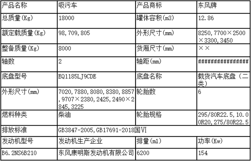 底盘配置: 采用东风原厂D9底盘,白色驾驶室(颜色可选),康明斯210马力国六发动机,原厂双层大梁,6档变速箱,轴距4500mm, ,275/80R22.5真空胎,原厂abs,带方向助力,离合助力器,气刹制动,带冷暖空调。