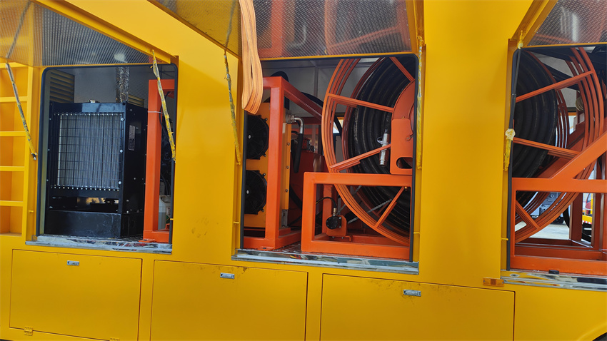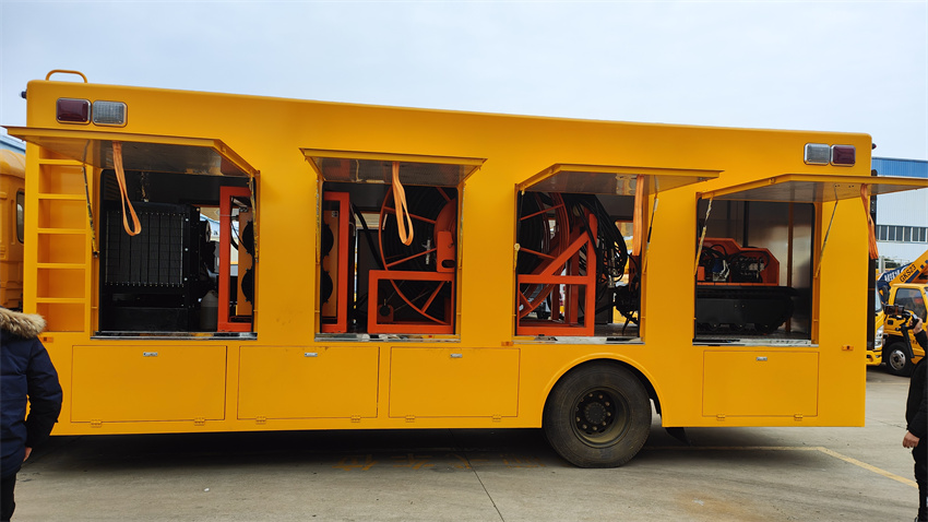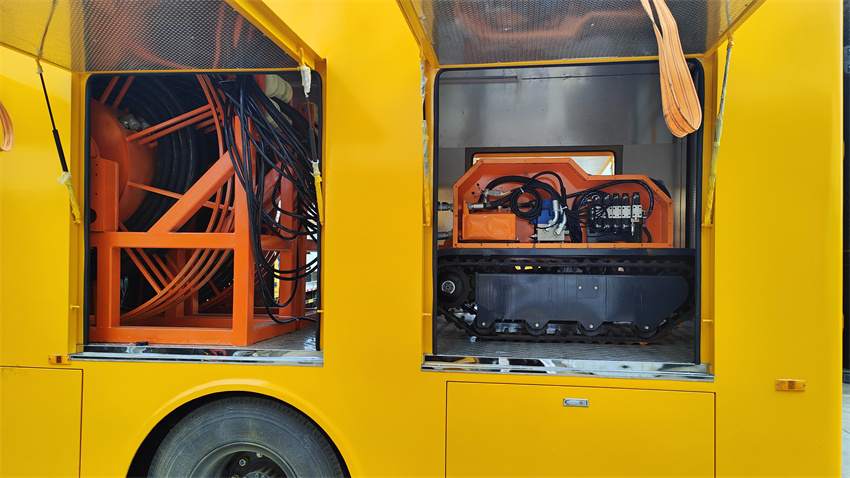 应急排水子母式抢险车排涝车发车广西,是有广西某水利局定制的这台车,此车排水量一小时达到3000立方,配机器人排水装备,配备60米液压油管驱动,可以到达人员车辆无法到达的危险区域,机器人排水装备小巧玲珑,坦克式履带前进方式,行驶距离60米,安全便携,车后配液压升降尾板,方便机器人装备上下车,如需要更详细的资料请联系本站。车辆部分图片如下图所示