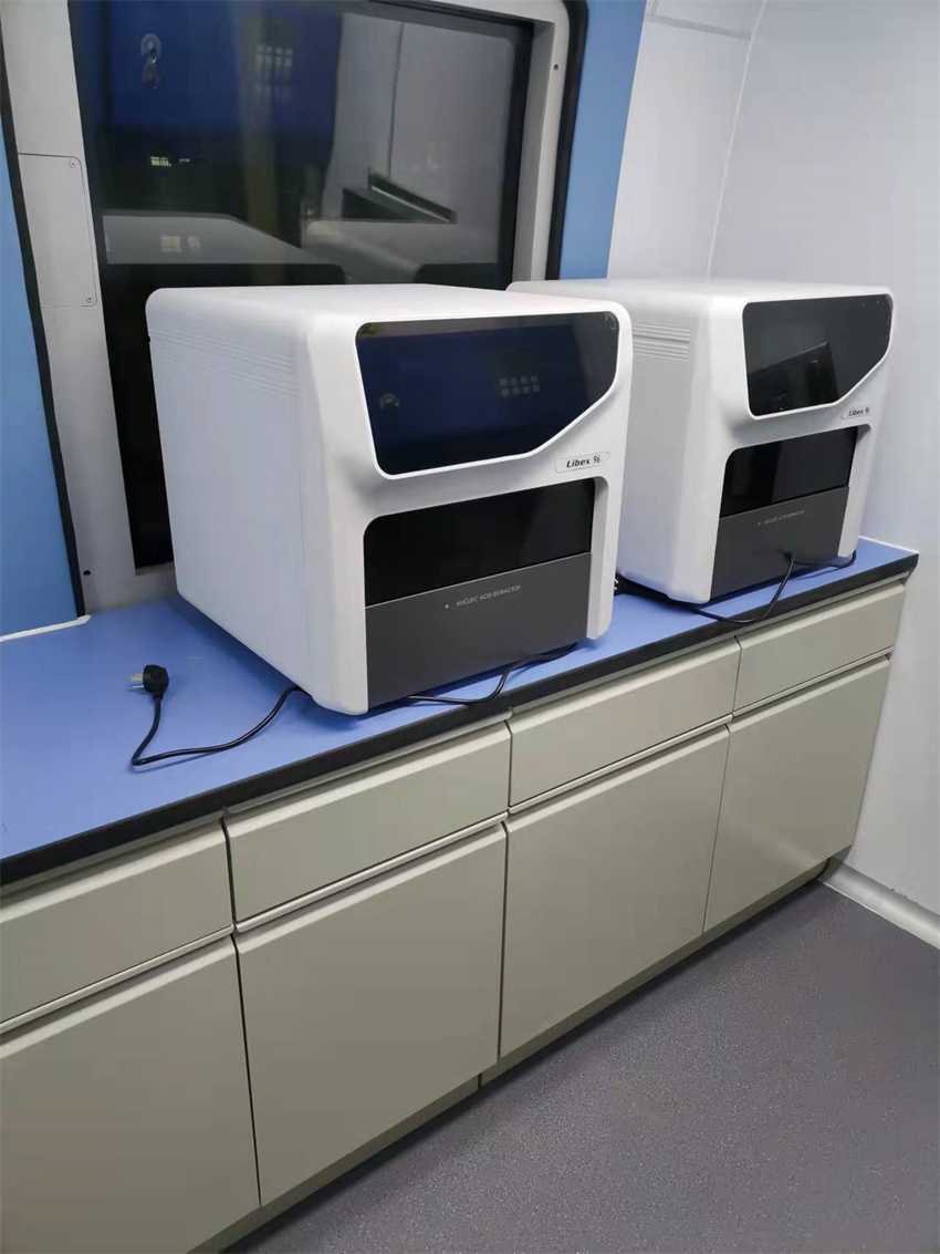 自动化核酸检测车具备加强型二级生物安全(P2+)实验室的基本功能,以汽车 底盘作为承载工具,具有较强的机动性,可在发生突发性公共卫生事件等情况 下快速抵达指定区域,展开后快速实施对可疑病原体的提取、检测、鉴定等实 验活动,适用于城市快速反应行动。匂动化核酸检测车具备集成式、自动化、 快速响应等特点。