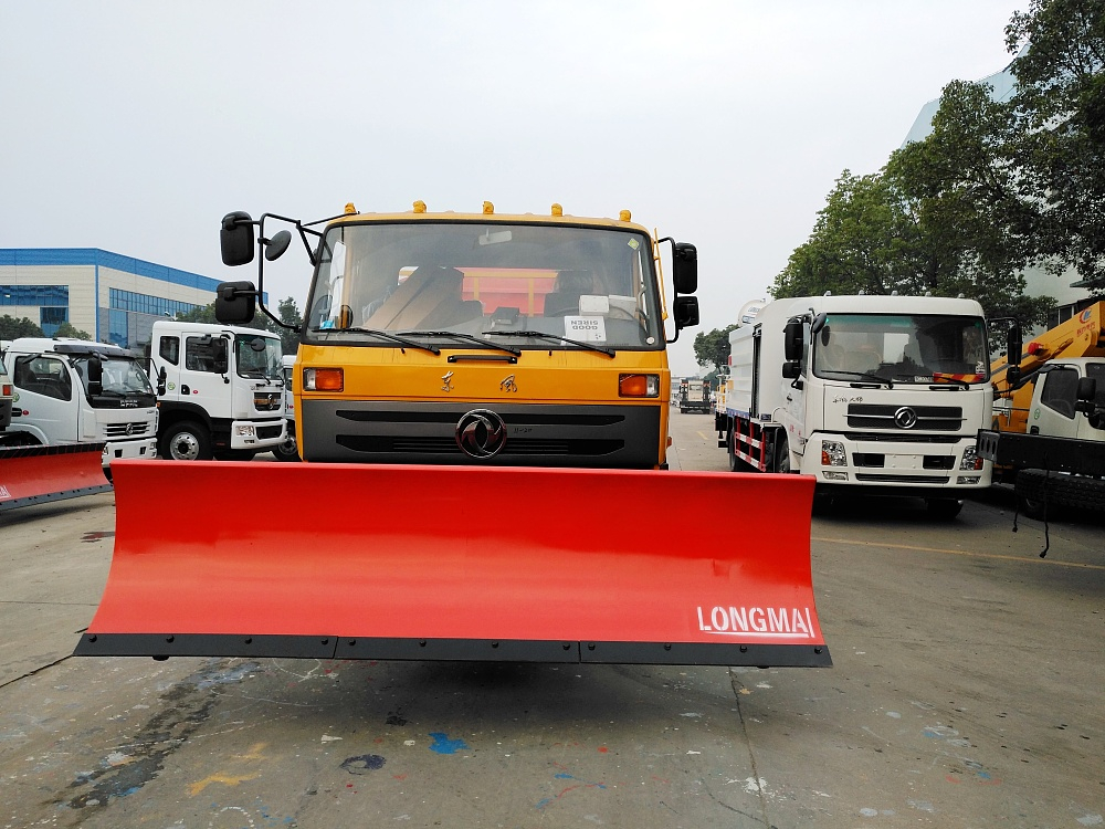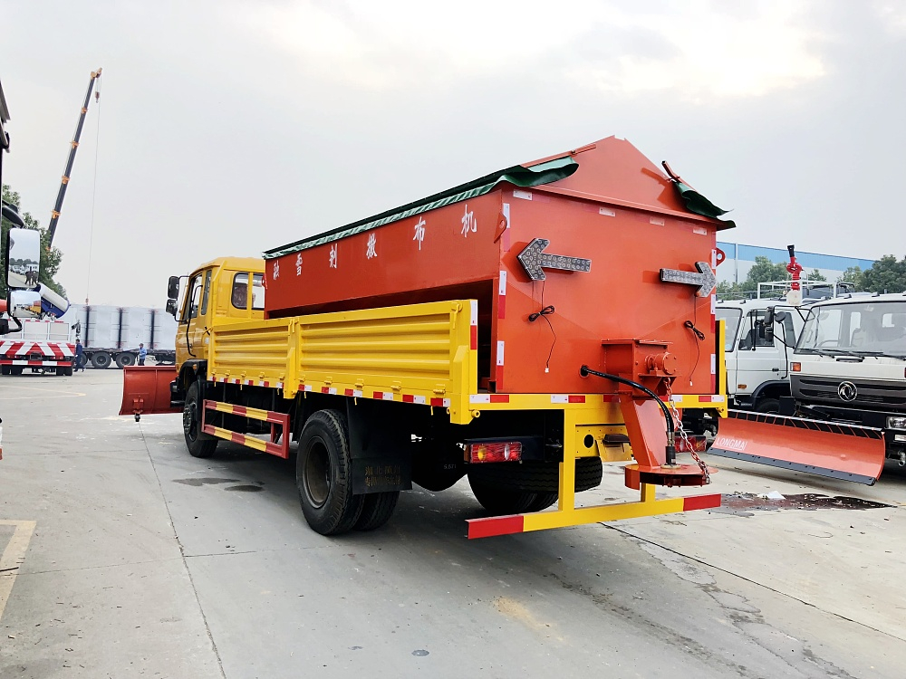 东风153融雪撒布推雪车CLW5160TCXD5的用途是清除道路上的冰雪,广泛使用于高等级公路、城市道路、机场、广场、风景区道路的除雪、融雪、除冰作业,相对于人工除雪,使用机械除雪具有更优的时效性,大幅提高除雪效率,减少人工劳动强度。使用东风153融雪撒布推雪车CLW5160TCXD5可以在冬季期间投入它们来确保道路上冰雪的清除以及行车的安全。除雪车安装的推雪铲或扫雪滚刷具有越障功能,能够很好的处理各种路面的雪和冰,如浮雪,薄雪,薄冰等,同时它可以在凹凸不平的路面行驶,作业及回避路障,工作效率高。