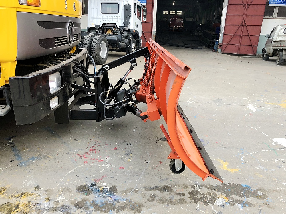 推雪铲产品性能特点说明: 1、犁板式除雪铲,双向角度可调,左右偏转角≥30°,并随意可调; 2、驾驶员在驾驶室内操作,安全可靠; 3、除雪铲除雪作业中,按路面横坡坡度,除雪铲铲刀具有自动调节功能; 4、除雪铲的安装、拆卸方便快捷; 5、除雪铲结构合理,低速作业时可将雪推向一侧,高速作业时能将雪抛起; 6、具有 立于车体之外的照明系统,便于夜间作业; 7、除雪铲的避让采用铲体翻转避让,当除雪板铲刃任意一点遇到障碍时,除雪铲铲体翻转避让,能有效的保障除雪板机车辆无断裂、变形现象。