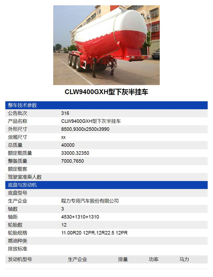 | 外形尺寸: | 9300×2500×3990 | 有效容积: | 32立方(32方粉粒物料运输车) |