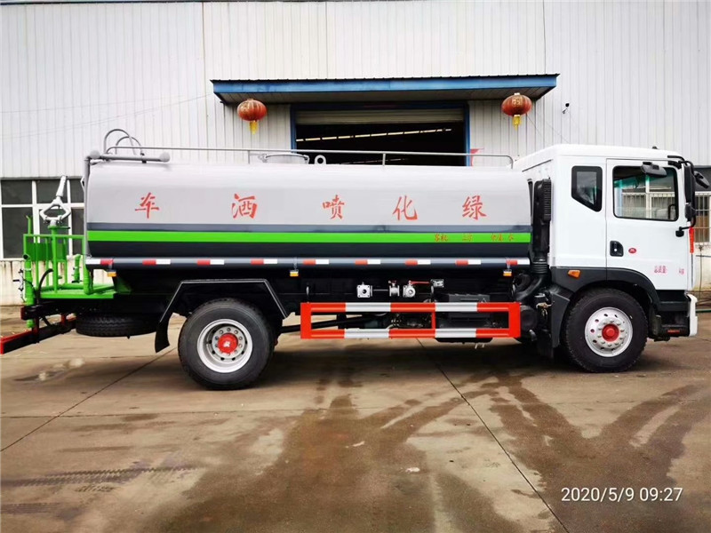 专用配置:罐体容积 15立方,罐体采用国标Q235碳钢材质,罐体厚度4MM,前后封头5MM加厚型,罐体内双层隔板具有防波荡作用,以减轻汽车行驶时罐内液体冲击;洒水车整车及外形尺寸严格按照国家机动车公告制作而成;装配大功率专用洒水泵,前冲、后洒、侧喷、后平台带绿化洒水炮,洒水炮可全方位旋转,可连续调成直冲状、大雨、小雨、毛毛雨;配消防接口,自流阀,滤网,带自吸自排功能。前封头带水位计,后平台主管路带1寸浇花接口,后爬梯,带1个消防接头,带1个自流阀,1个过滤装置,其余标配。1、可选装后平台带雾炮机组用于喷雾降尘、农药喷洒作业;2、可选装前置电子洒水炮驾驶室操作;3、可选装气动球阀驾驶室操作。